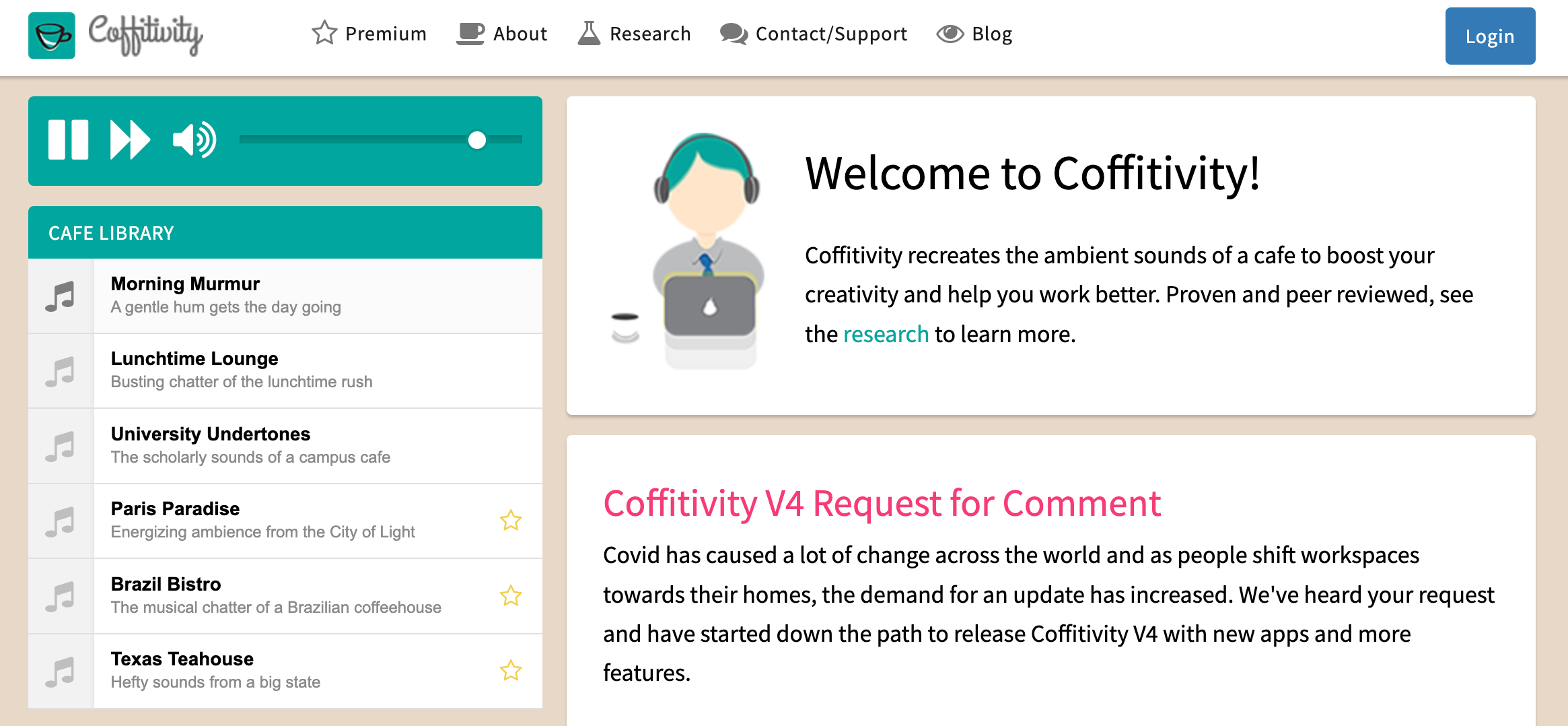 Constantly getting distracted? Coffitivity recreates the ambient sounds of a coffee shop to help you focus on the task at hand.