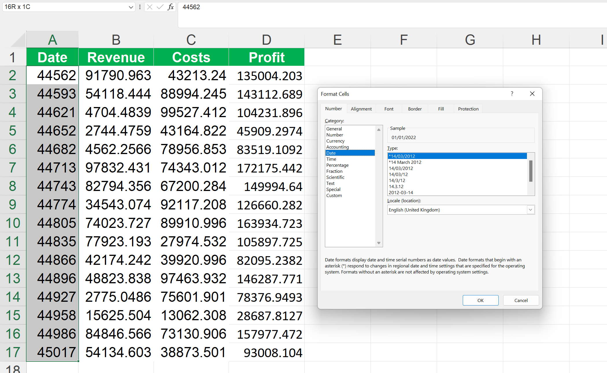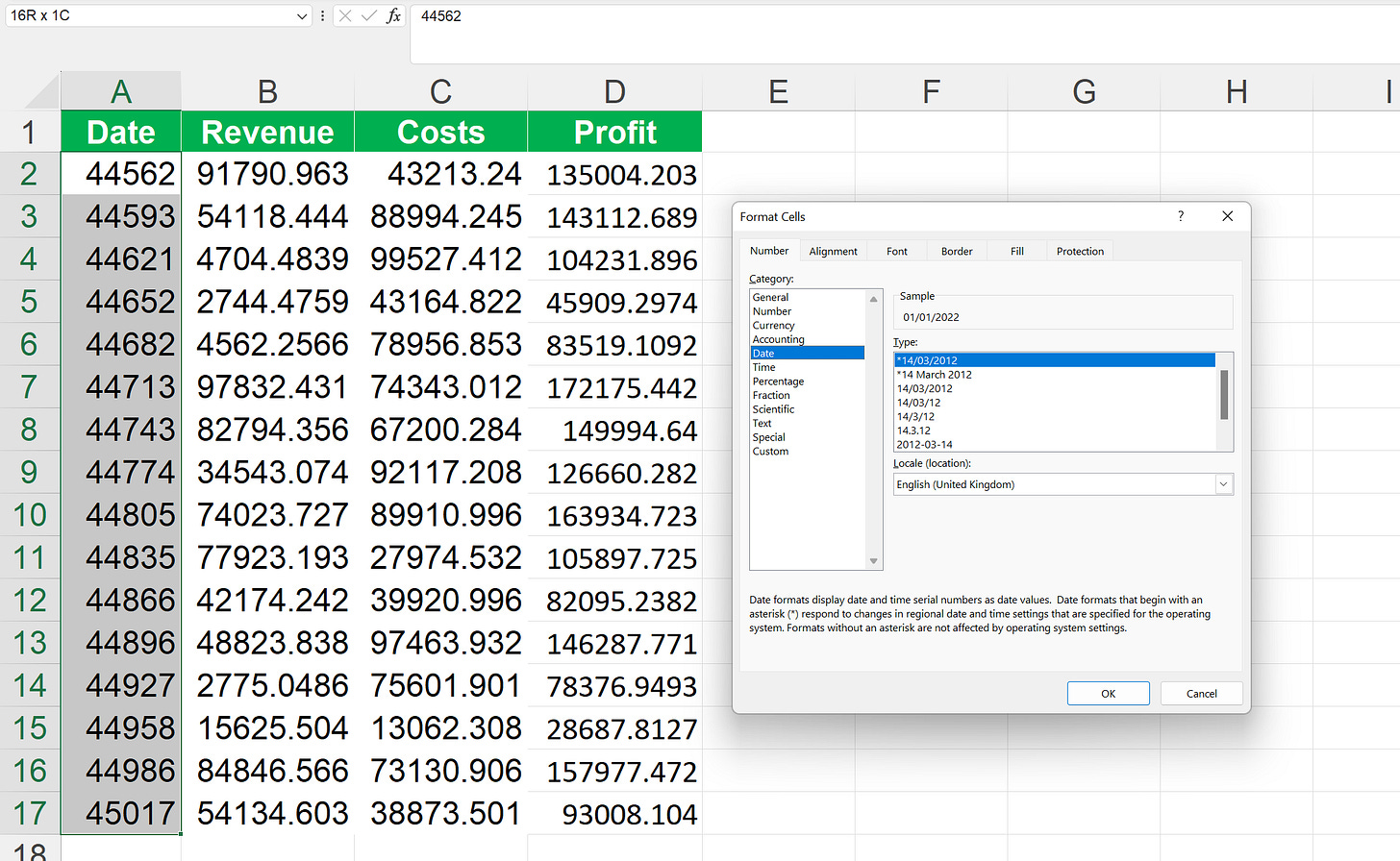 Pro tip 📎- When selecting data use the CTRL + ARROW shortcuts e.g. CTRL + DOWN arrow was used to select the date column above. Doing this means your macro will work even when the size of your data changes, for example if more rows are added.