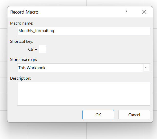 This will prompt you to name your macro. Type something sensible and hit ok.